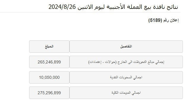 البنك المركزي يبيع 275 مليون دولار في مزاد اليوم