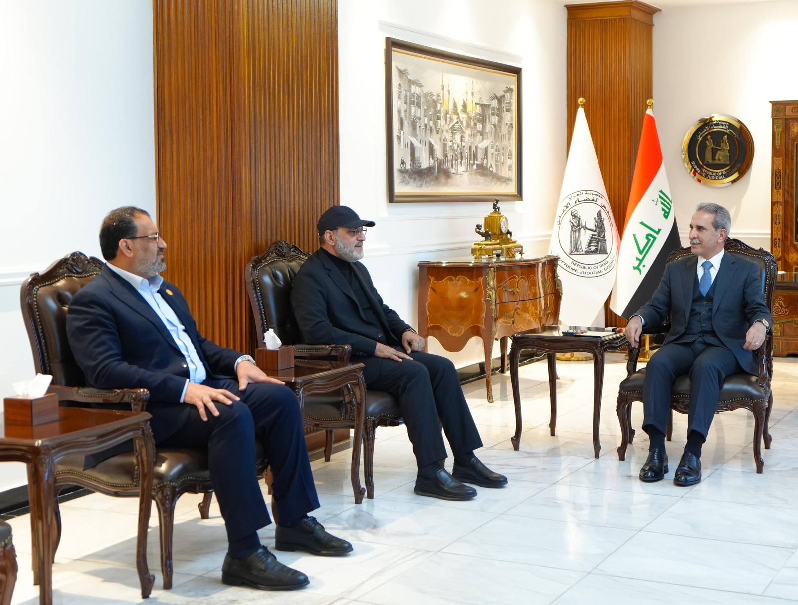 استقبل رئيس مجلس القضاء الأعلى القاضي فايق زيدان الأمين العام لكتائب سيد الشهداء الحاج أبو الاء الولائي ورئيس كتلة منتصرون النيابية النائب فالح الخزعلي.