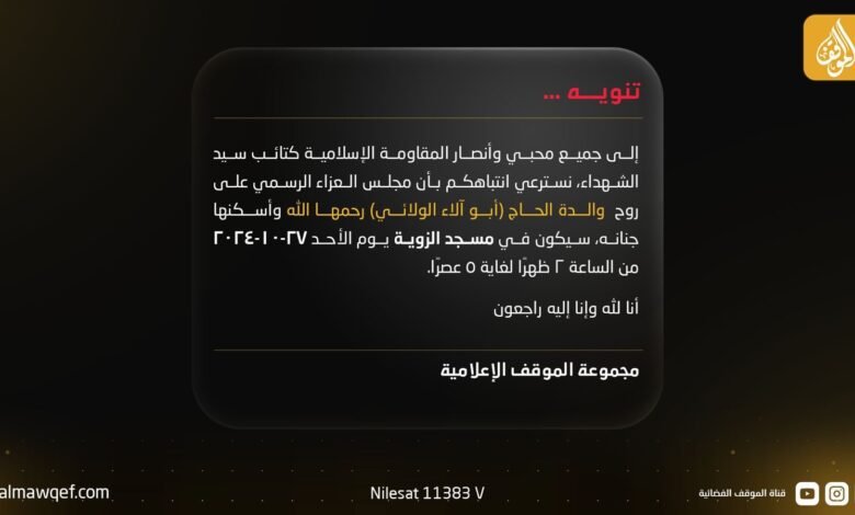 المقاومة الاسلامية حركة حماس تعزي الامين العام لكتائب سيد الشهداء الحاج ابو آلاء الولائي بوفاة المغفور لها والدته وتسأل الله…