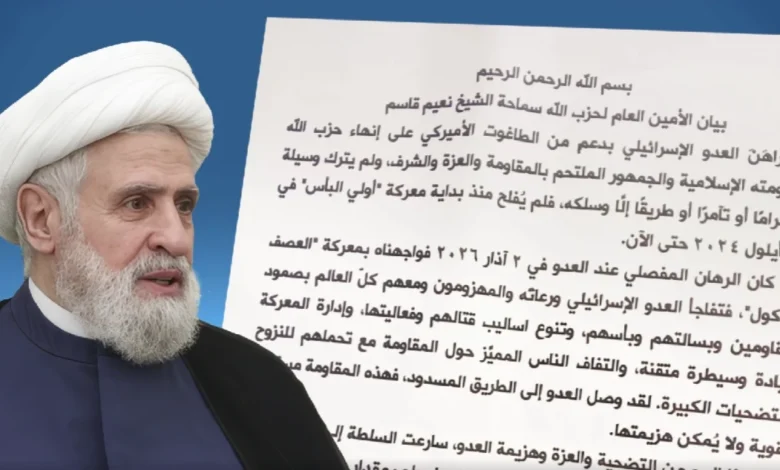 أكد الأمين العامّ لحزب الله الشيخ نعيم قاسم في بيانٍ أصدره الاثنين، أنّ العدو الإسرائيلي “لن يبقى على شبر واحد…