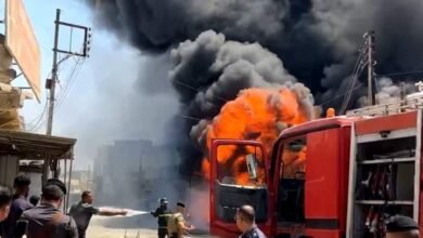 حريق ضخم يلتهم معملا للاسفنج بالجانب الايمن من الموصل.. والدفاع المدني تتدخل