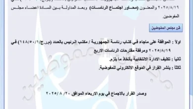أعلنت الأمانة العامة لمجلس الوزراء، اليوم الثلاثاء، تعطل الدوام الرسمي يوم الخميس الرابع من أيلول المقبل. وذكرت الأمانة العامة في…