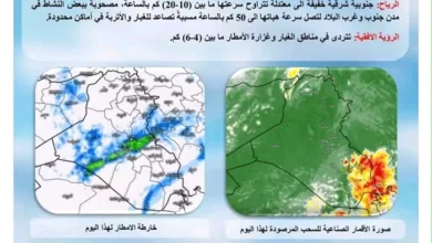 أعلنت هيئة الأنواء الجوية، الجمعة، أن الطقس في عموم البلاد سيكون غائم جزئي الى غائم أحيانا مع فترات من الصحو…